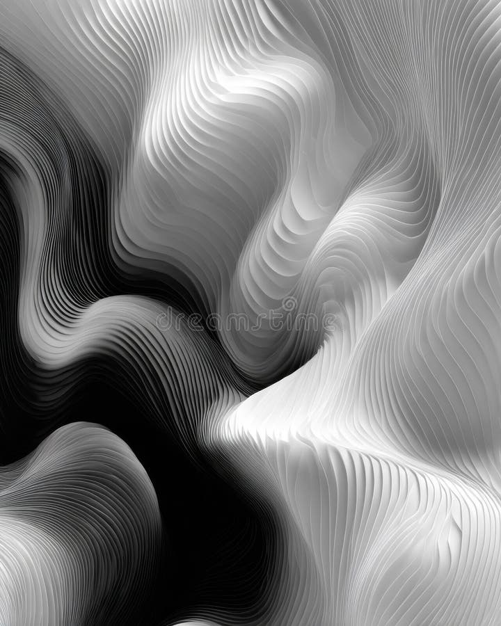 Abstract Grayscale Image Of Flowing Fabric Forms With Textured Surfaces and High Contrast Lighting royalty free illustration Abstract Grayscale Image Of Flowing Fabric Forms With Textured Surfaces and High Contrast Lighting