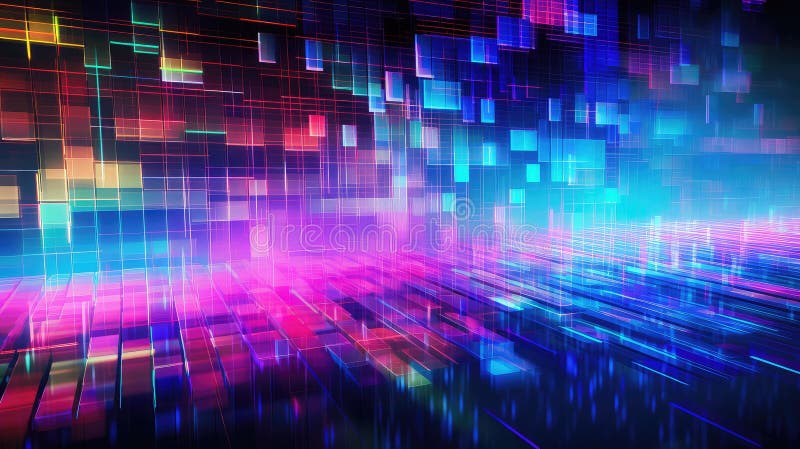 Abstract neon pixel grid illustration blue technology, light glow, square screen abstract neon pixel grid AI generated