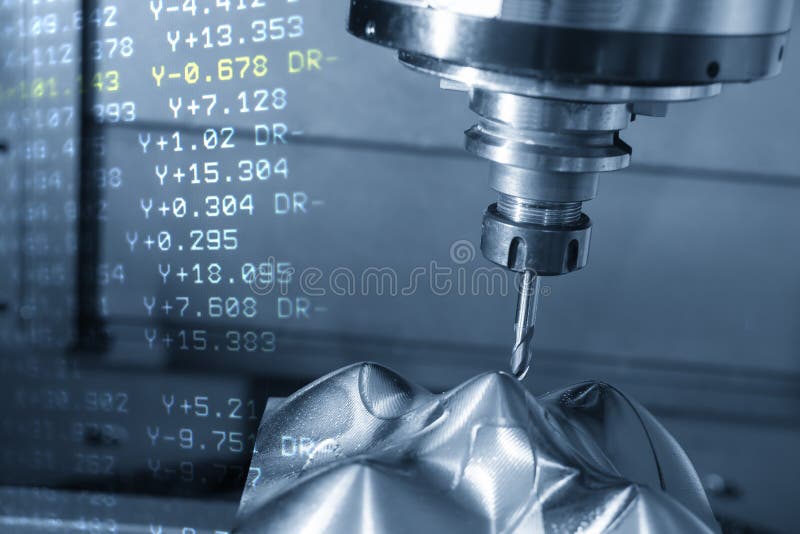 The abstract scene of CNC milling machine. The abstract scene of CNC milling machine and the G-code data cutting the mold part. The hi-precision CNC milling machine.