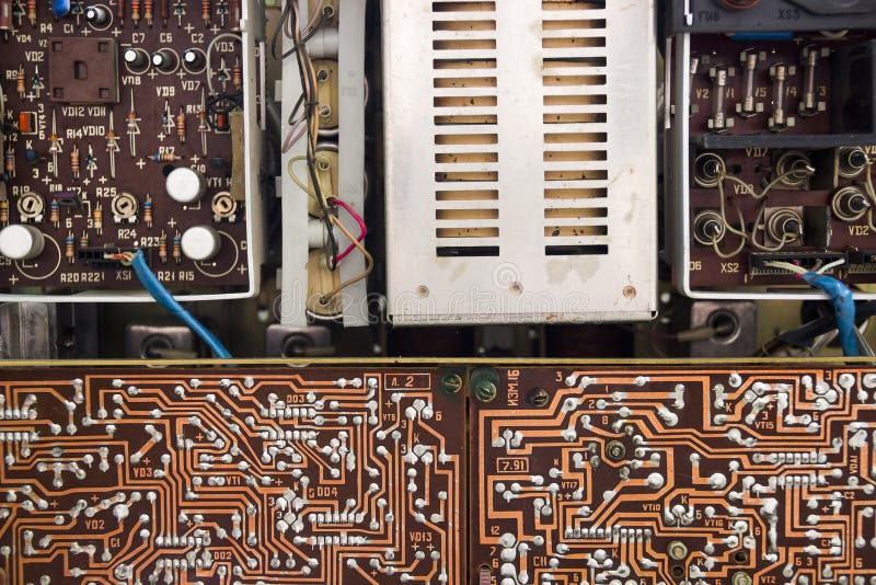 Back of tape recorder. Opened back of old vintage tape recorder