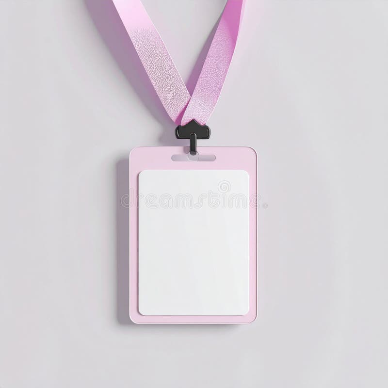 Blank Pink ID Card with Ribbon Mockup. Ai Generated