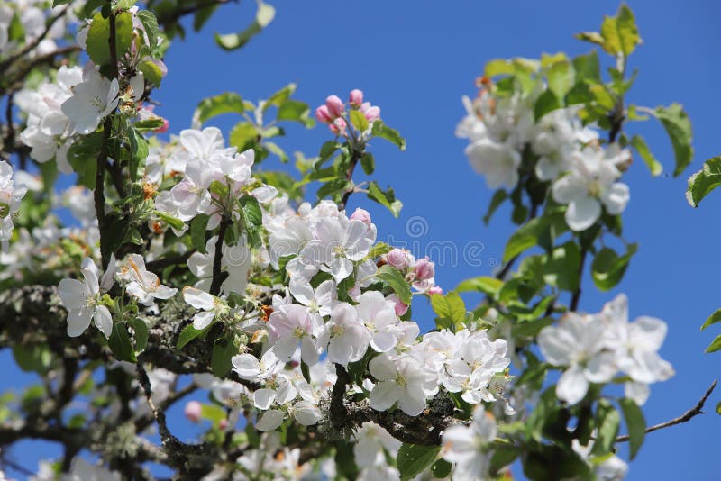 Blooming apple tree blossoms with smooth bokeh royalty free stock photos Blooming apple tree blossoms with smooth bokeh