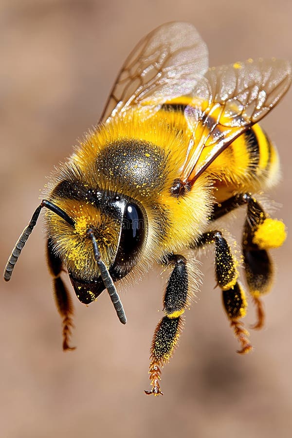 Close-up of a bee covered in pollen. Created with the help of Generative AI tools.