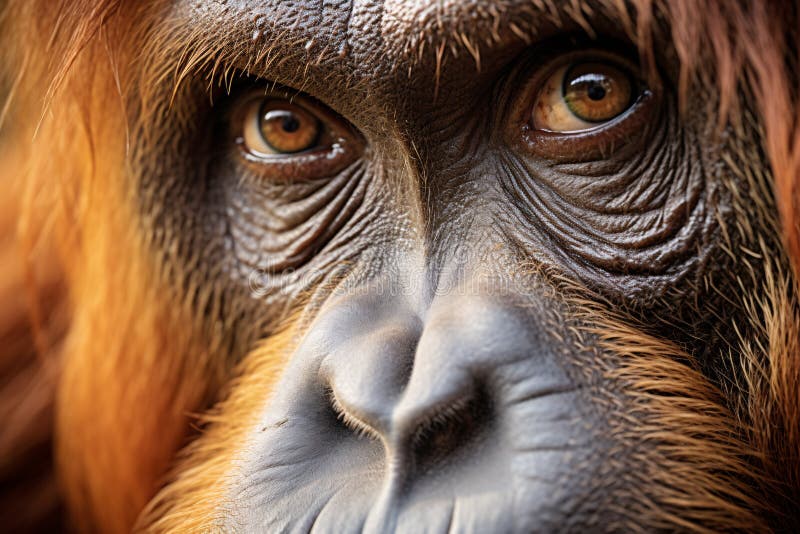 Close up of eyes of Orangutan ape.