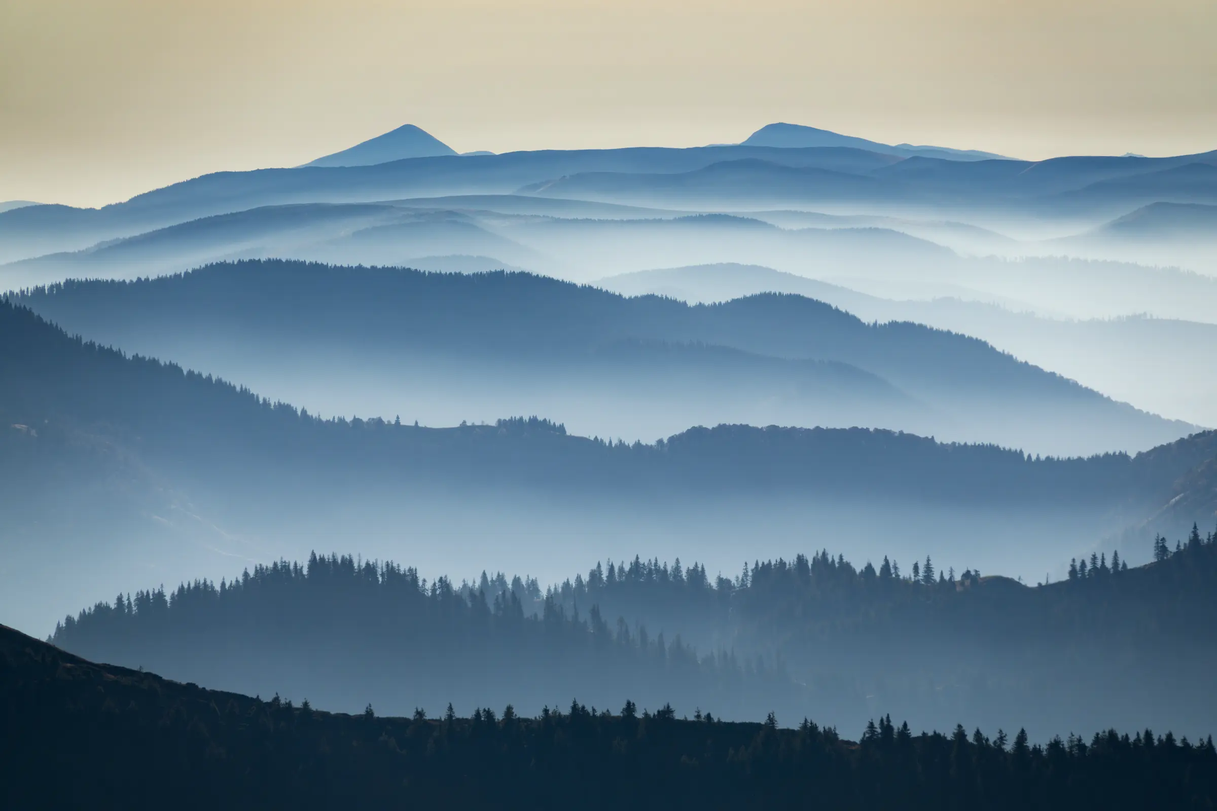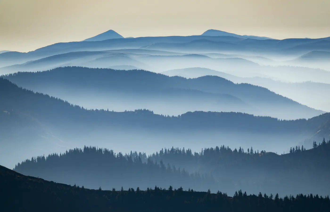 misty mountain ridges in the morning artistic photo of carpathian mountains ukraine amazing view on hoverla and petros