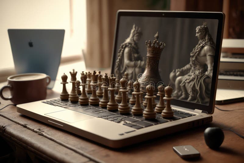 A computer, learning how to play chess after being shown countless games, created with generative ai