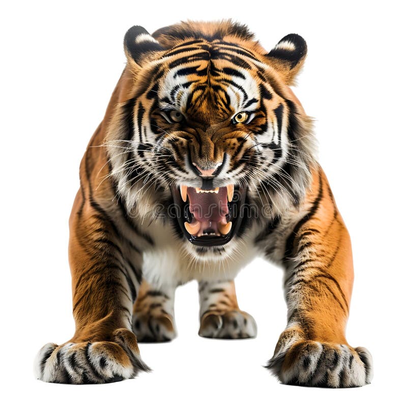 3D Rendering of a Roaring Tiger on Transparent Background - Ai Generated.