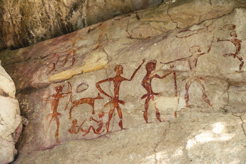 Ancient Rock Stone Age painting. Ancient Rock Art or Stone Age painting in Thailand.