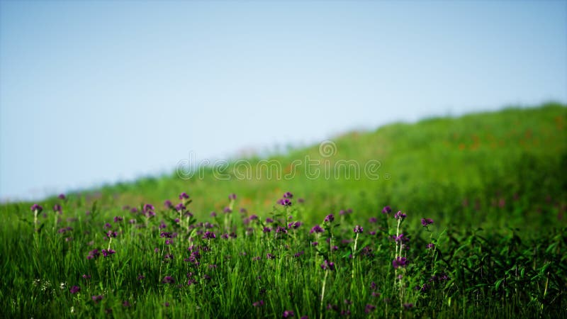 Field of green fresh grass under blue sky