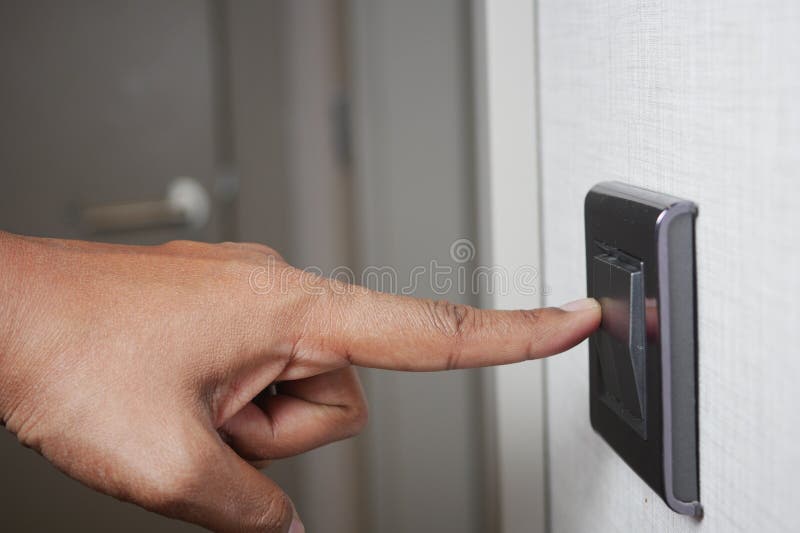 A finger turning on lighting switch.