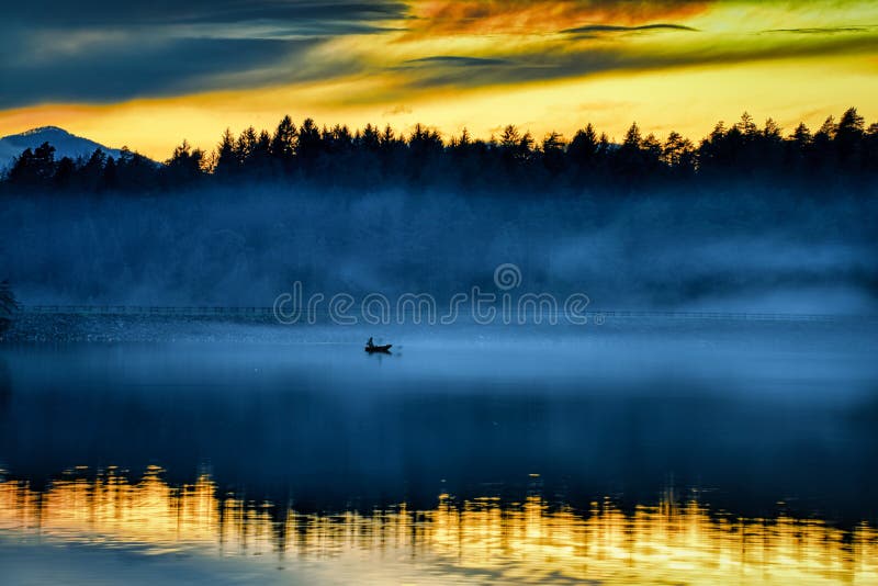 Foggy sunset. Foggy mystical sunset at lake