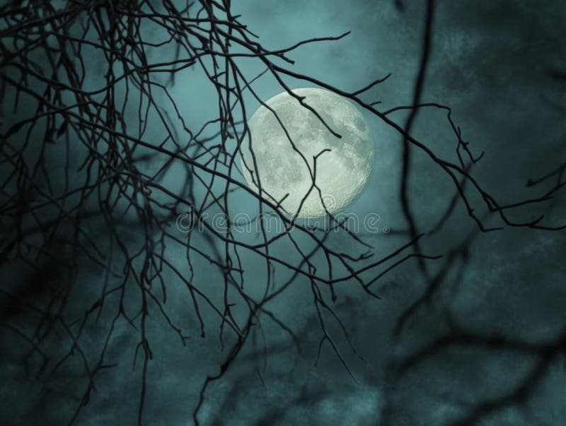 Full Moon Through Bare Branches in the Night Sky. AI Generated Image