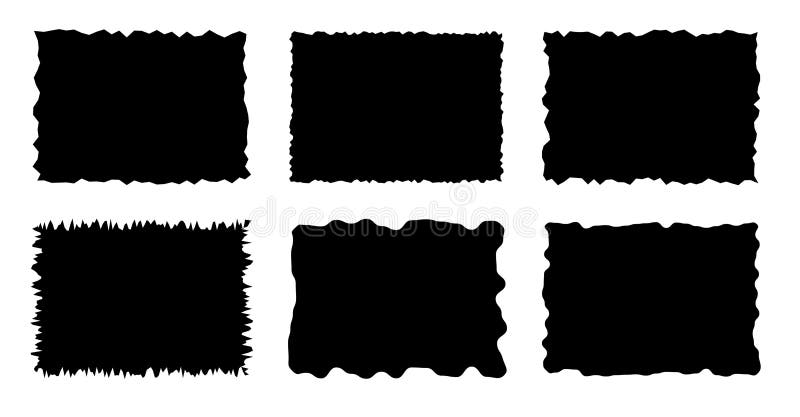 Jagged rectangle. Black simple shape. Rectangle paper template jagged and rough.