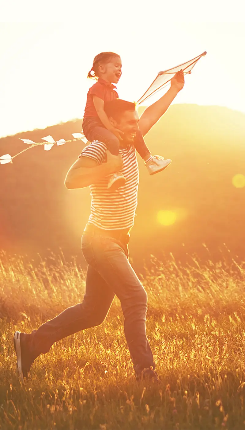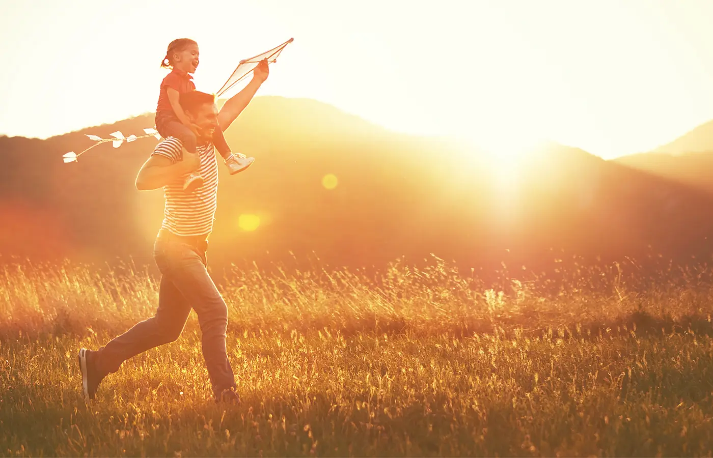 happy family father and child run on meadow with a kite in summe the summer the nature