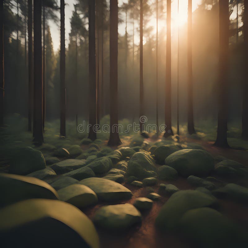 A low polygon image of the forest during a beautiful sunset - generated by ai