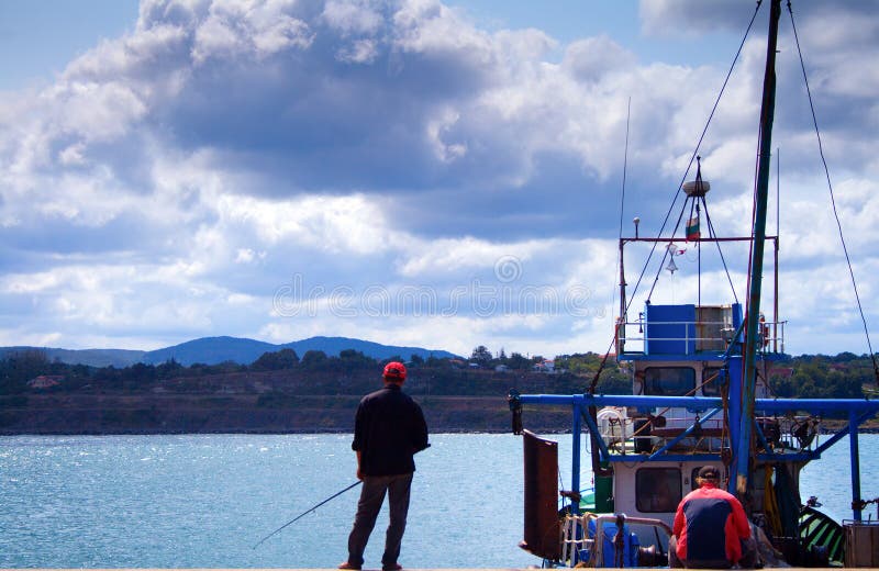 Two men fishing in the sea