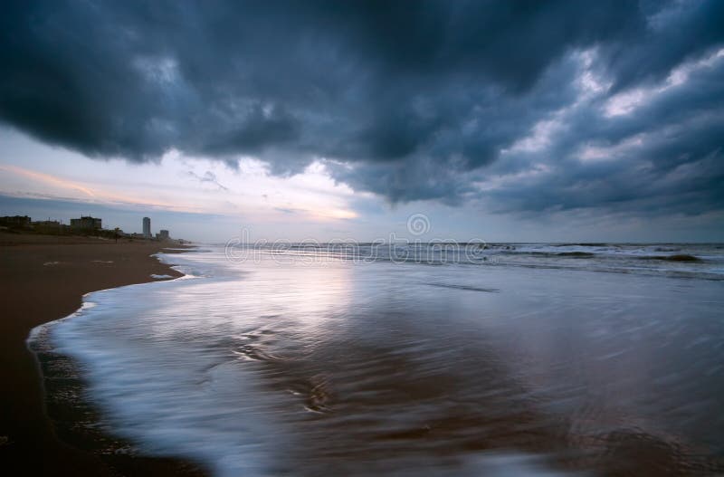 Seascape with sea wave cutter and soft water. shot taken at night with long exposure