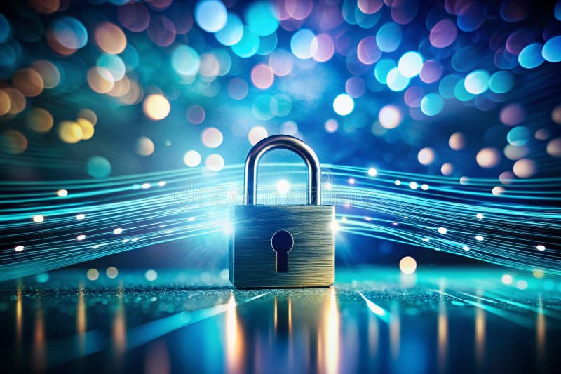 Protecting Digital Assets A Minimalist Visualization of Data Breach Vulnerability. This compelling image portrays the vulnerability of digital security in a modern, minimalist style. A stylized lock, a fundamental symbol of protection, is juxtaposed against a swirling stream of data, visually representing a security breach. The bokeh background, skillfully rendered, adds a layer of depth and artistic impact, enhancing the visual narrative. The stark contrast between the