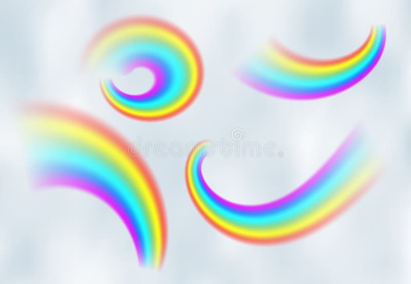 Rainbow in the blue sky among the light clouds. Rain bow realistic vector illustration with mesh brushes included
