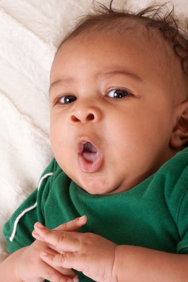 Ethnic multiethnic mulatto Baby boy in green. Young ethnic multiracial mulatto little boy on bed