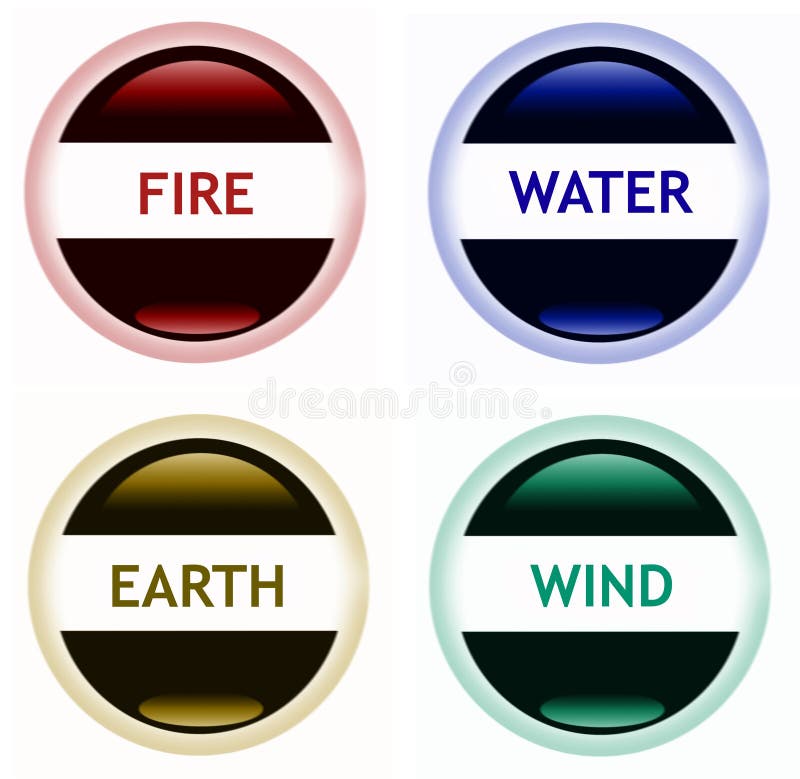 Fire water earth wind. Internet web buttons and symbols for the four elements