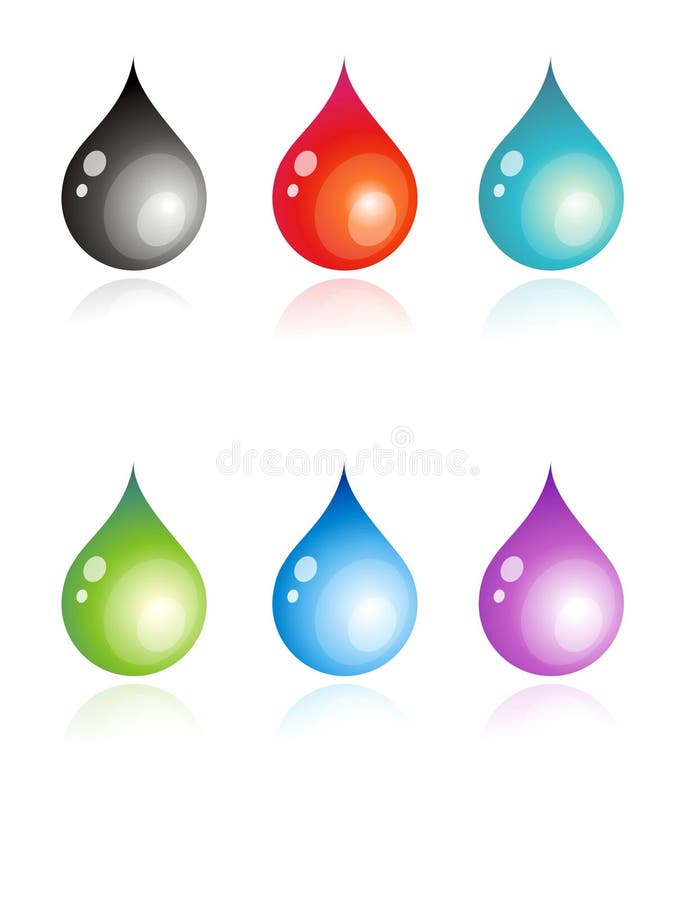 Multicolour drops illustration. 6 vector illustration of coloful drops