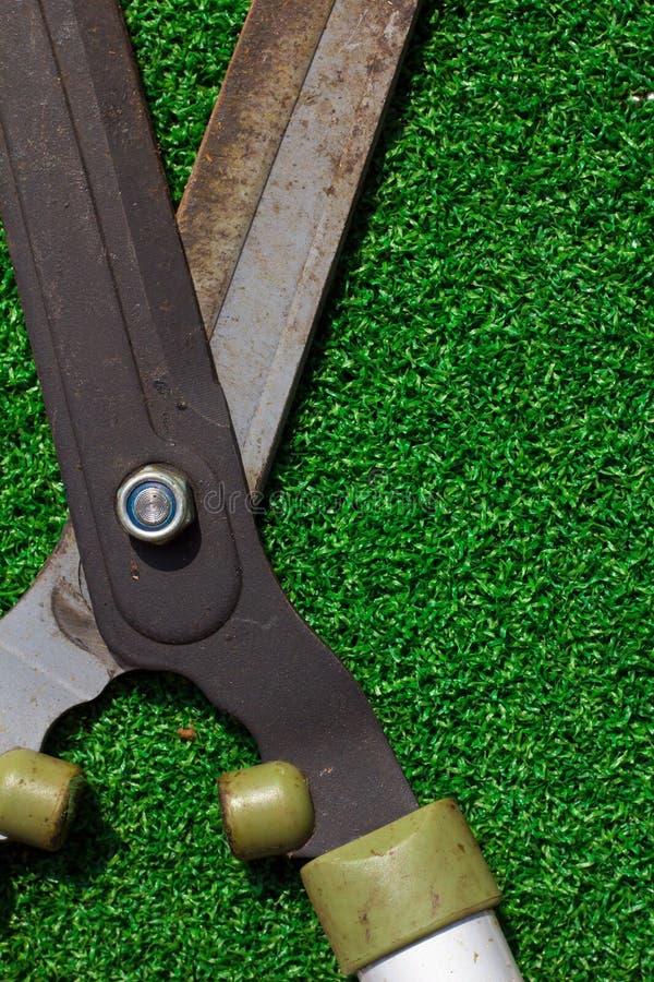 Close-up of brush cutters. Scissors for grass cut off excess plants that grow on the lawn. Work in the greenhouse stock image Close-up of brush cutters. Scissors for grass cut off excess plants that grow on the lawn. Work in the greenhouse