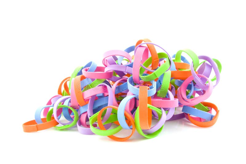 Self made part streamers. Colorful party streamers made by children, isolated on white background
