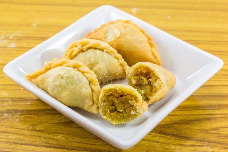 Delicious curry puffs with spicy sweet potatoes fillings royalty free stock photos Delicious curry puffs with spicy sweet potatoes fillings