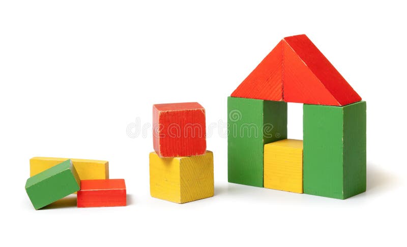 House made from colorful building blocks. Simple house made from colorful wooden building blocks