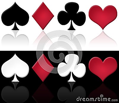 Illustration of the 4 digital glossy cards symbol, on white and black background.