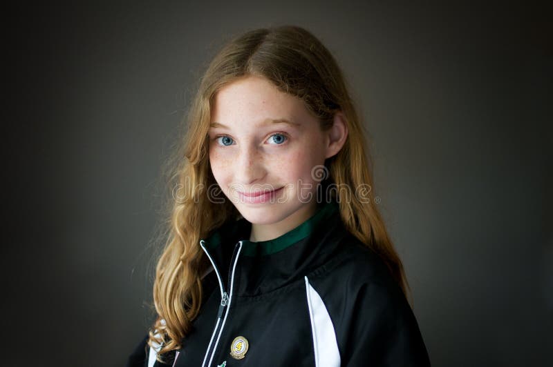 Blue eyed girl. Teen girl wearing a sport jacket looking at the camera with a smile