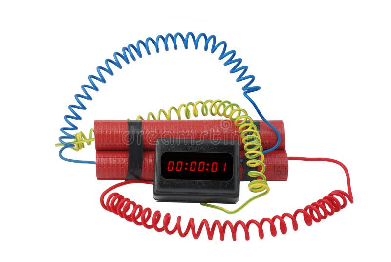 Electronic time bomb on white background