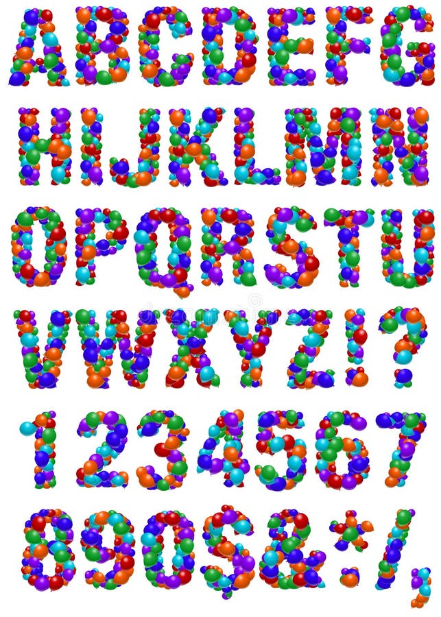 Balloon alphabet. Alphabet letters composed of colorful balloons