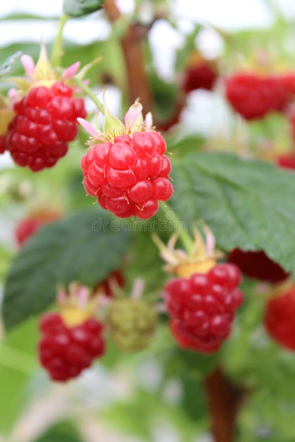 Growing raspberry in hydroponic plantation. Detail of growing raspberrys in hydroponic plantation