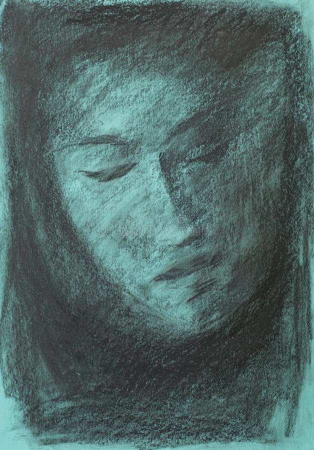 Hand drawn charcoal portrait. Hand drawn charcoal drawing illustrating a diffuse human portrait
