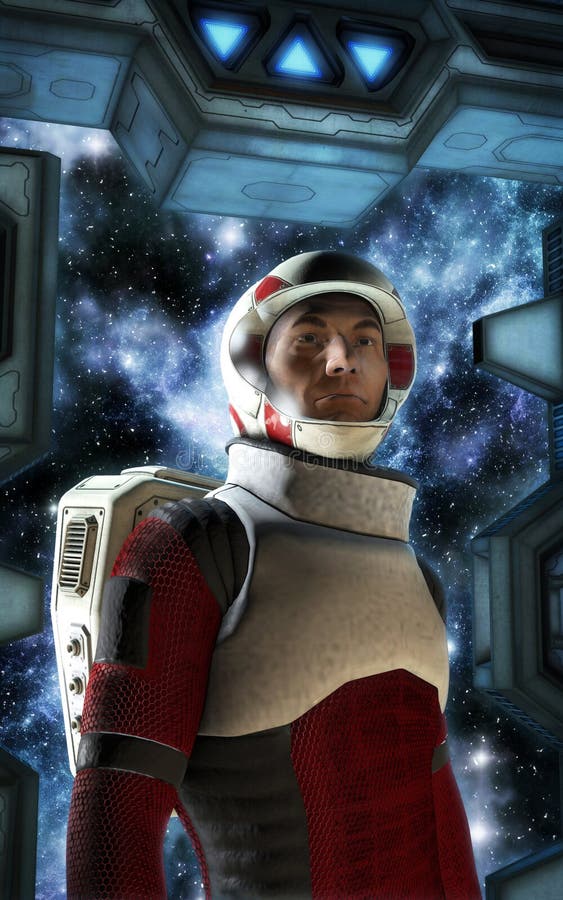 Astronaut spaceship airlock 3D render science fiction illustration