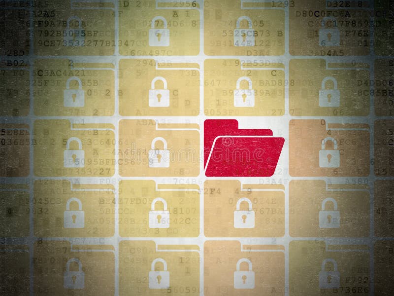 Finance concept: folder icon on Digital Paper. Finance concept: rows of Painted yellow folder with lock icons around red folder icon on Digital Paper background, 3d render