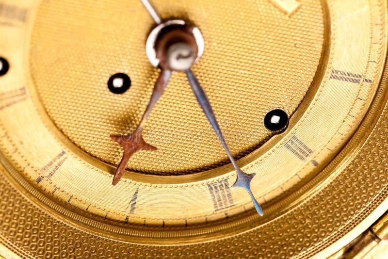 Detail of antique gold clock with Roman numeral, macro lens