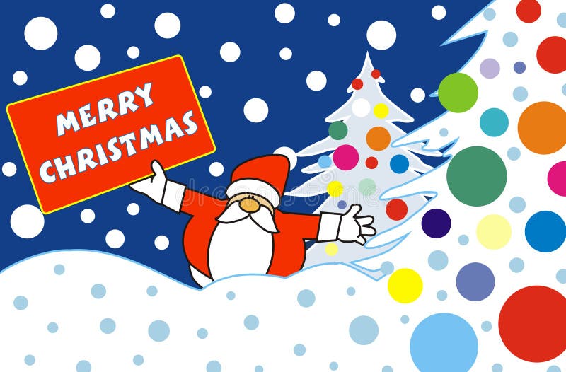 Santa Claus in the snow. Santa Claus hold table with title merry christmas