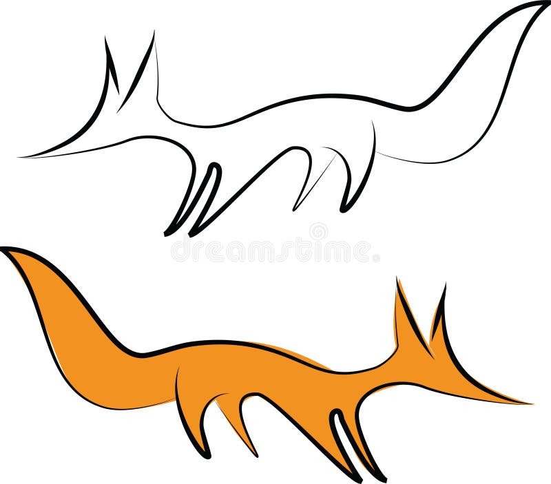 Two fox. Two calligraphy fox: red and white