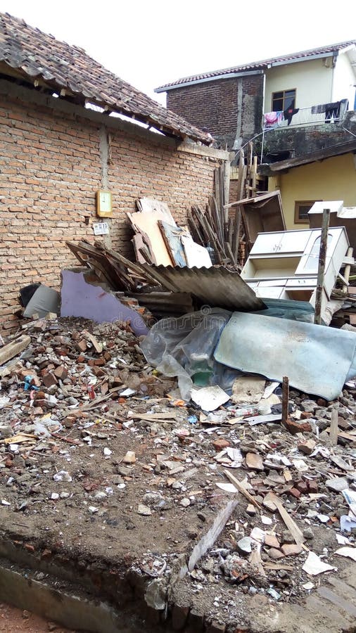 Demolition of the house material construction. Demolition of the house cement material construction view