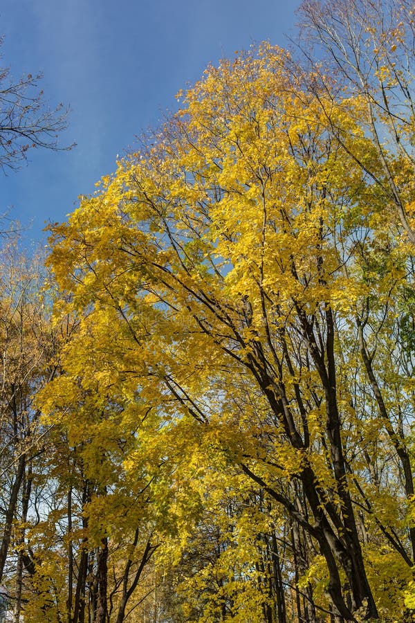Maples with yellowed autumn foliage growing at the edge of the stock photography maples with yellowed autumn foliage growing at the edge of the