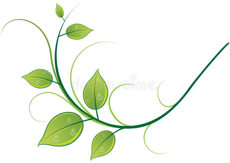 Pattern of twigs and leaves. Illustration of pattern of twigs, leaves and drops on white background
