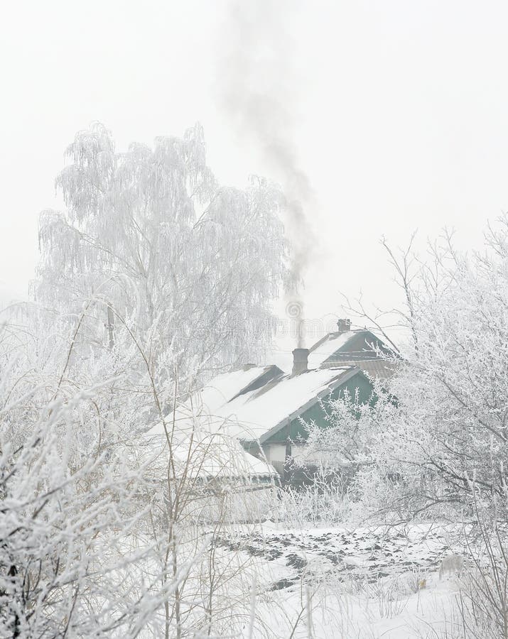 Early frosty morning in small ukrainian village. Winter scenery. royalty free stock photos Early frosty morning in small ukrainian village. Winter scenery.