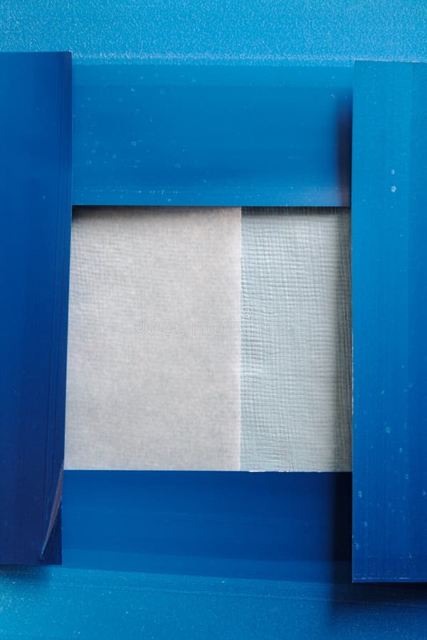 Blue frame collage background. Collage of printer blotting paper with textured papers