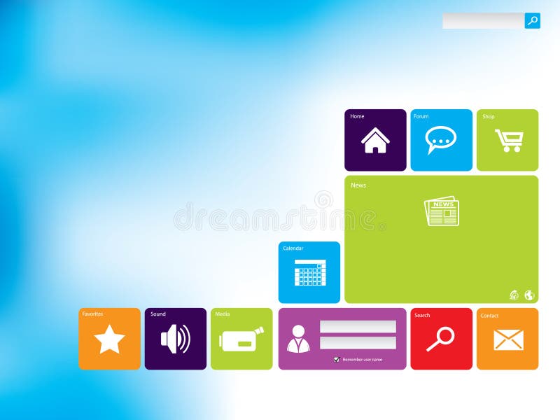 Cool website with flat icons. Cool website design with flat icons and abstract blue background