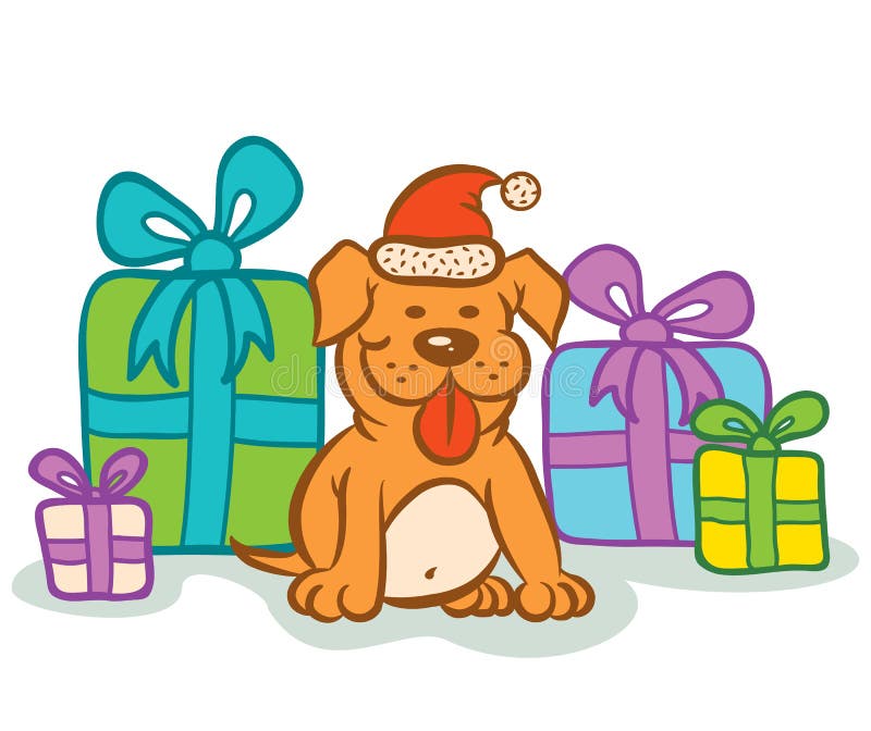 Vector illustration of a cute cat with Christmas gifts. Cat in Santa hat with presents. Cute illustration for winter holidays stock illustration Vector illustration of a cute cat with Christmas gifts. Cat in Santa hat with presents. Cute illustration for winter holidays