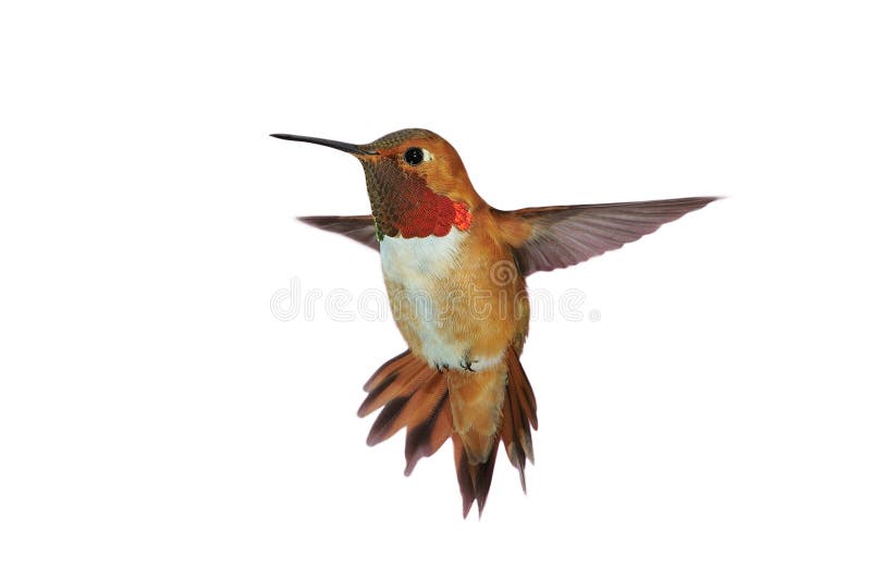 Male rufous Hummingbird hovering in air