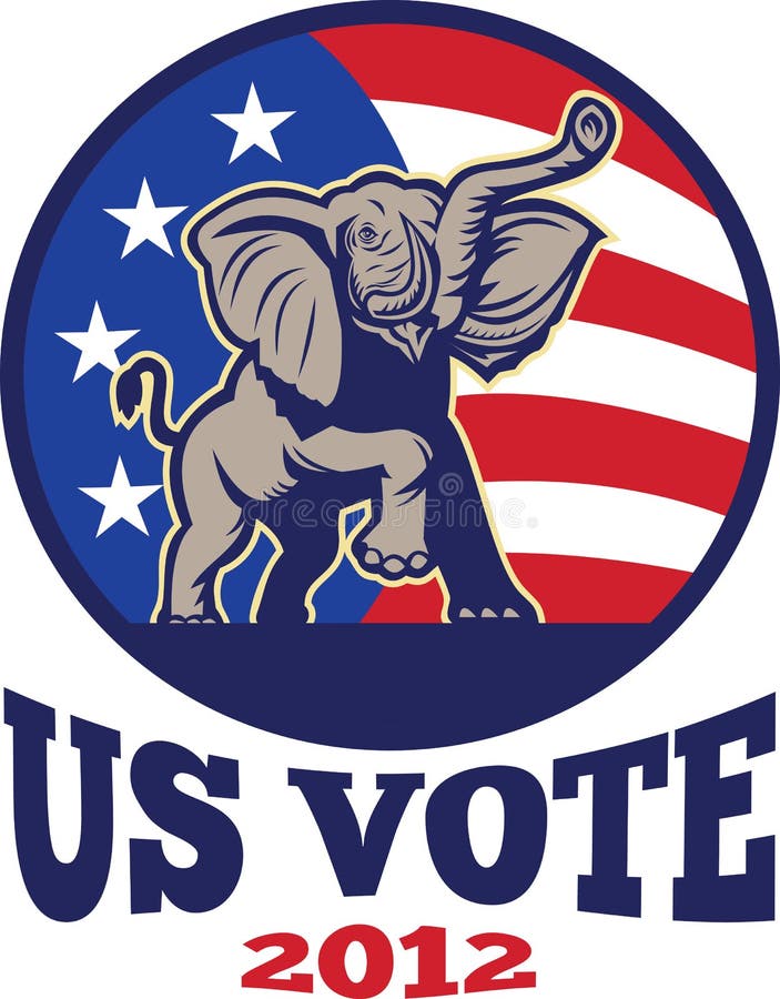 Republican Elephant Mascot USA Flag. Illustration of a republican elephant mascot with American USA stars and stripes flag done in retro style with words us vote 2012